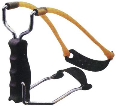 彈弓除了這種Y形的構造之外,也有整個伏貼在手臂上、以手掌握住的型式: